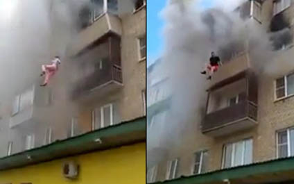 Vecinos atajan a familia que saltó de apartamento en llamas
