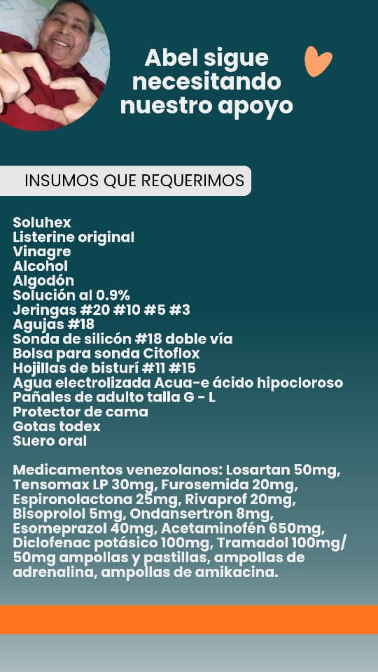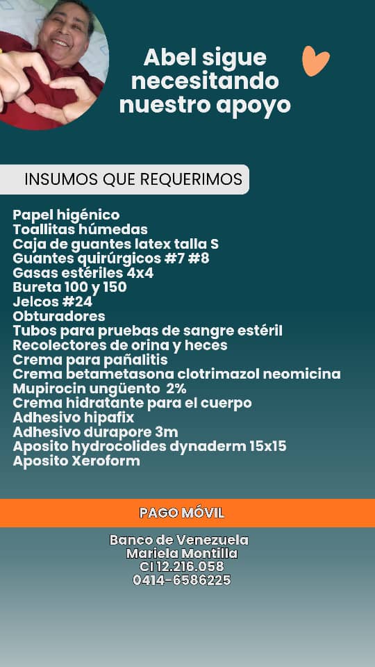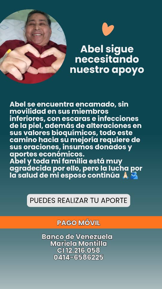 “Tras la operación, Abel estuvo hospitalizado 11 días debido a descompensación, diarrea, infecciones y bajadas de hemoglobina. Luego que lo estabilizaron regresamos a casa y está en condición de cama desde entonces”, contó Montilla.