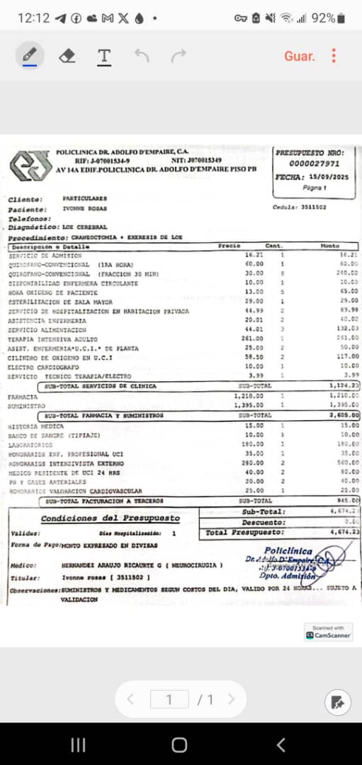 "Buscando otras opciones, la llevé al General del Sur para ver si la operaban allá. La vio una neurocirujana y me dijo que para operarla tenía que alquilar los equipos porque no los tenían, entonces, así sale más caro que en la clínica privada”, explicó Karelis Silva, hija de la septuagenaria al periodista Jonathan Núñez, según publicó en su blog El Hecho Destacado.