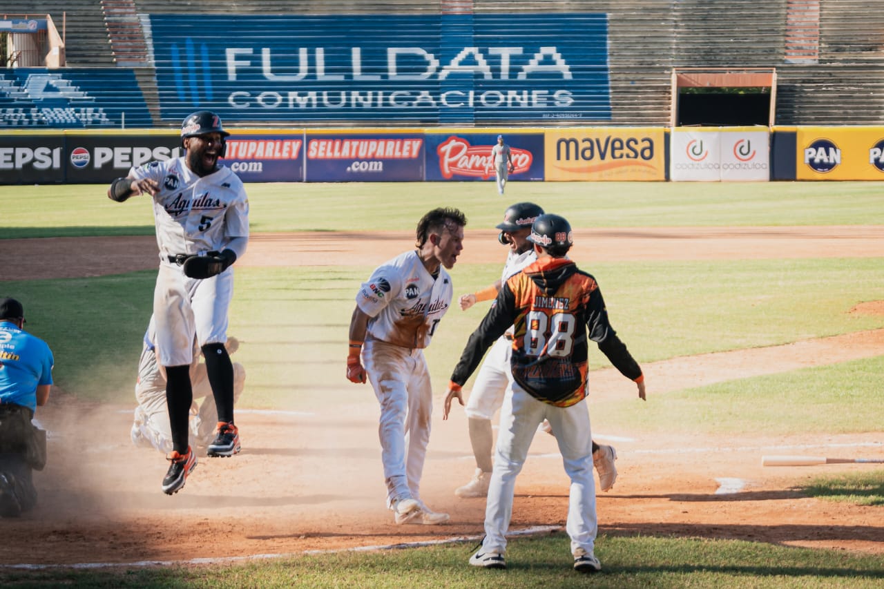 Todas las anotaciones fueron marcadas luego de dos outs cuando Kenedy Corona recibió boleto con las bases llenas para empatar la pizarra a cuatro rayitas y seguidamente Simón Muzziotti conectó doble por la derecha remolcado tres carreras para los occidentales.