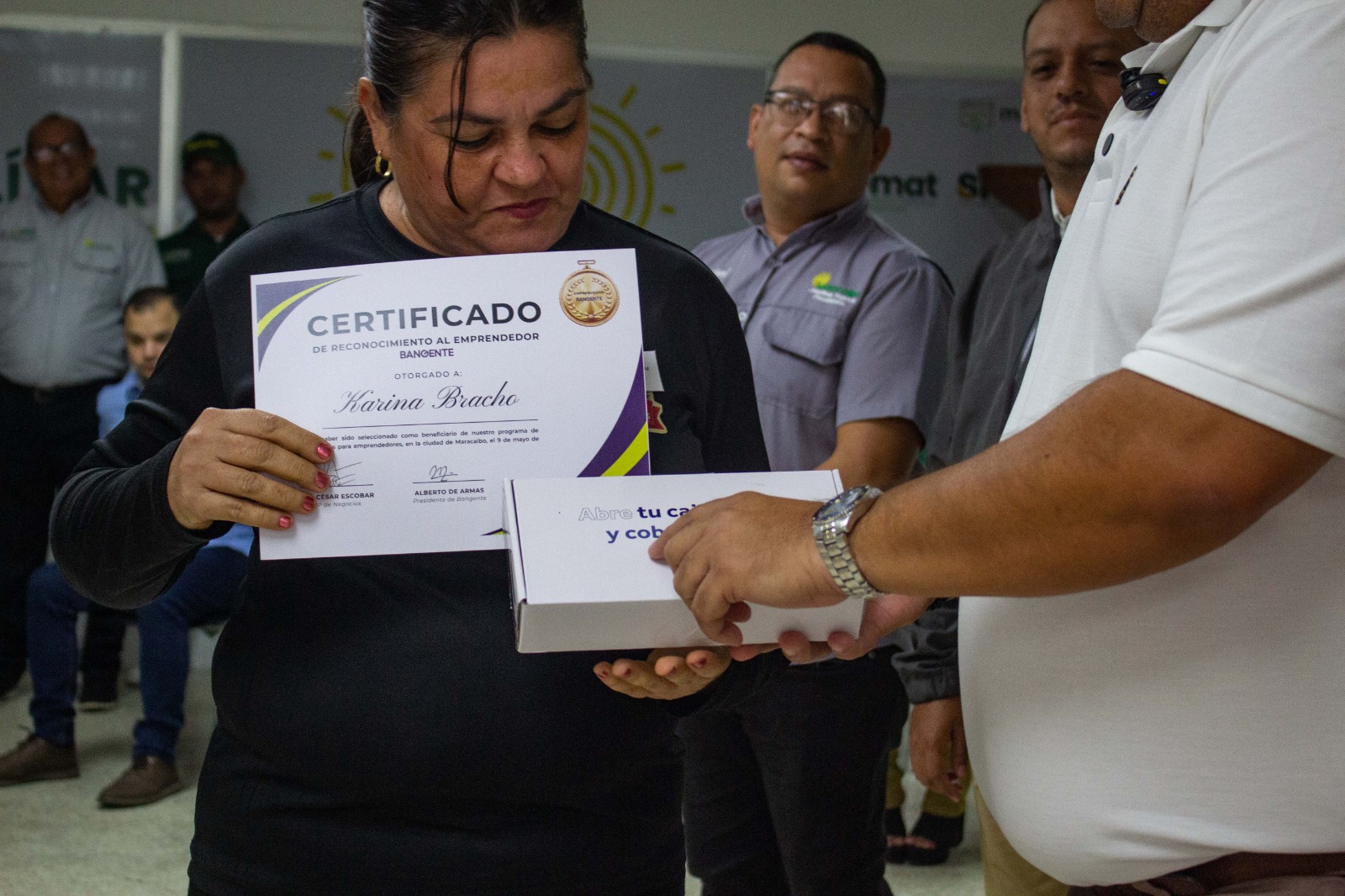 Junto con su microcrédito, los emprendedores marabinos recibieron un terminal punto de venta (TPV), una herramienta que facilitará el cobro por tarjeta de crédito o débito de los beneficiados.