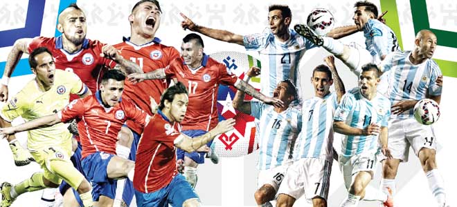 Por la supremacía de Sudamérica. El anfitrión y la subcampeona del mundo se retan a muerte en Santiago por la final de la Copa América Chile 2015. El duelo Chile-Argentina representa la cumbre futbolística del continente, pues se miden dos escuadras que proponen atacar sin importar las circunstancias o el rival.