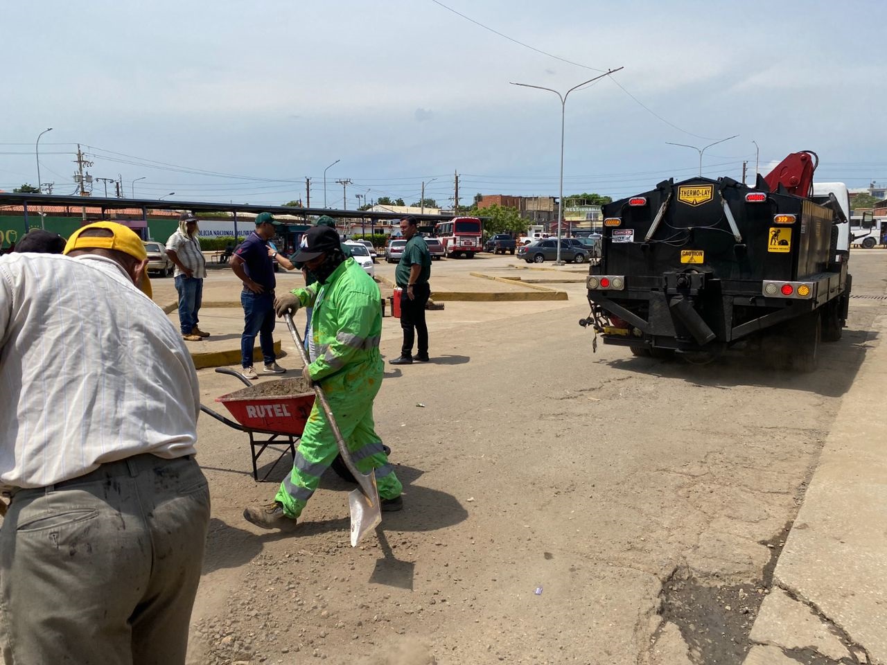 Para mejorar el tránsito de las unidades que prestan servicio en el Terminal de Pasajeros, la Alcaldía de Maracaibo a través de las Direcciones Generales de Servicios Públicos e Infraestructura inició el pasado lunes 10 de septiembre la aplicación de cuatro toneladas de asfalto caliente para tapar los huecos en los accesos hacia los andenes 2-3 y 3-4.