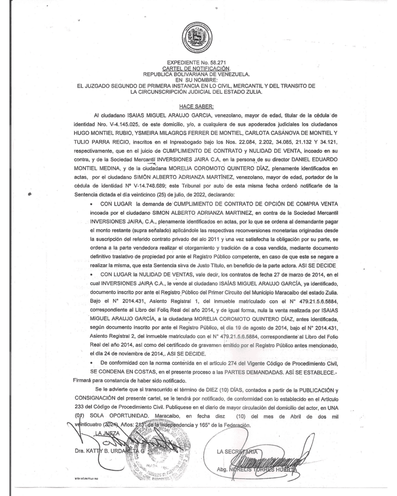CARTEL DE NOTIFICACIÓN-EXP. 58.271