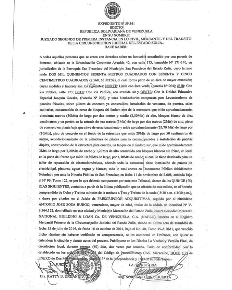 Cartel de emplazamiento Juicio por partición y liquidación Maria Carolina Gonzalez julio 25, 2024 - 11:26 am