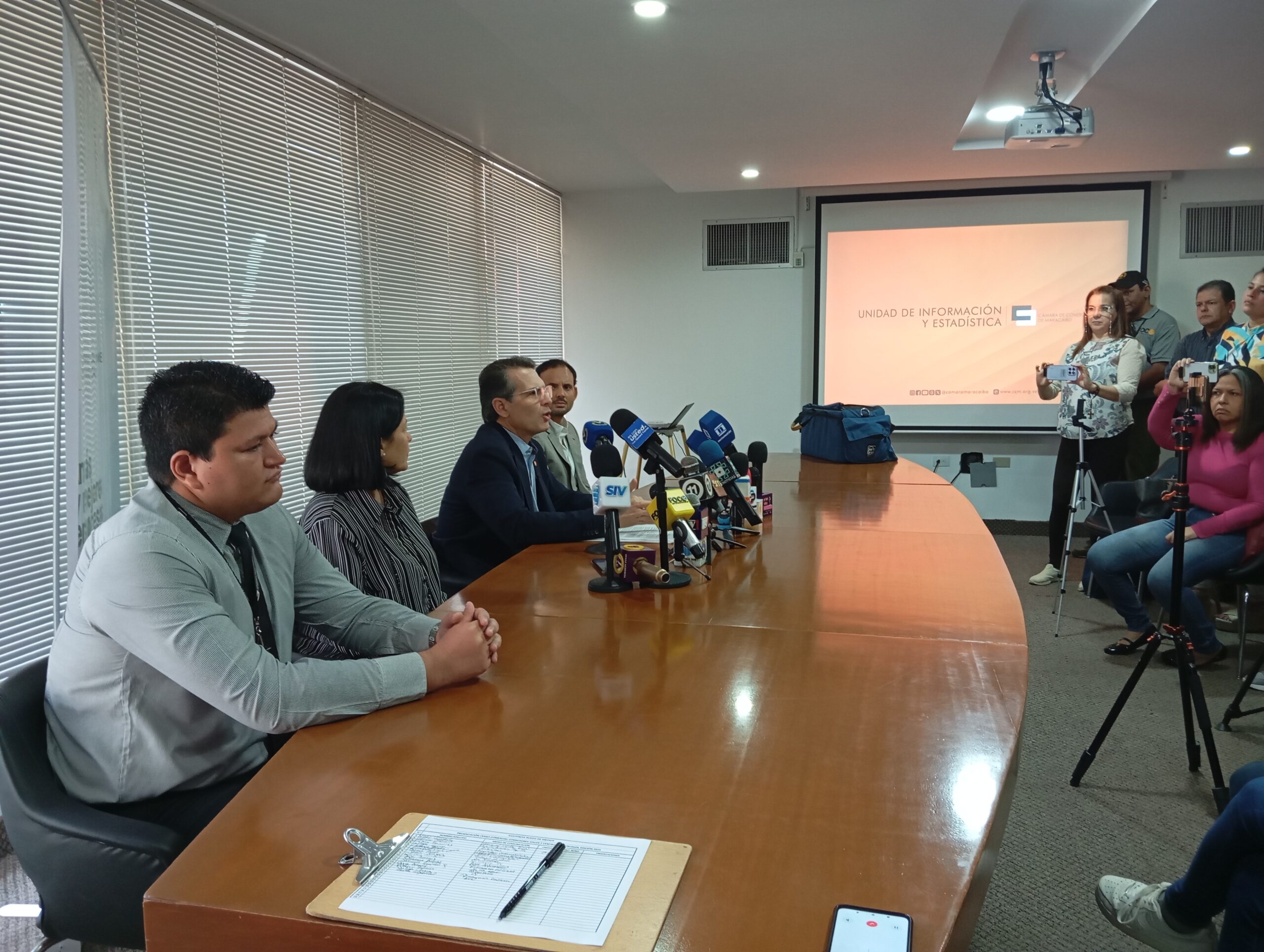 Dino Cafoncelli, presidente de la Cámara, acompañado por David Mouncharfiech, vicepresidente; Claudia Suárez, directora ejecutiva; y Moisés Huerta, coordinador de la Unidad de Información, ofreció los detalles del levantamiento estadístico.