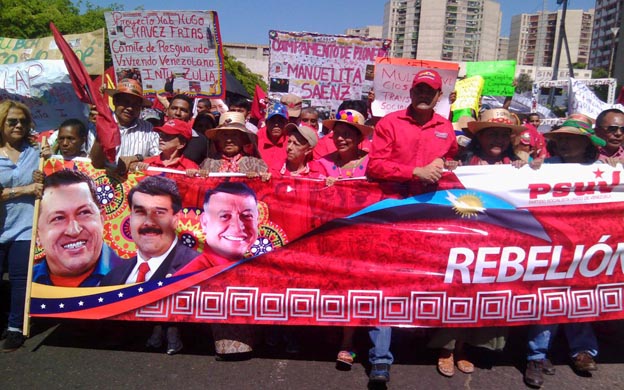 Representantes del PSUV lideraron la movilización que denominaron la Gran caminata de la comunidad indígena por la paz.