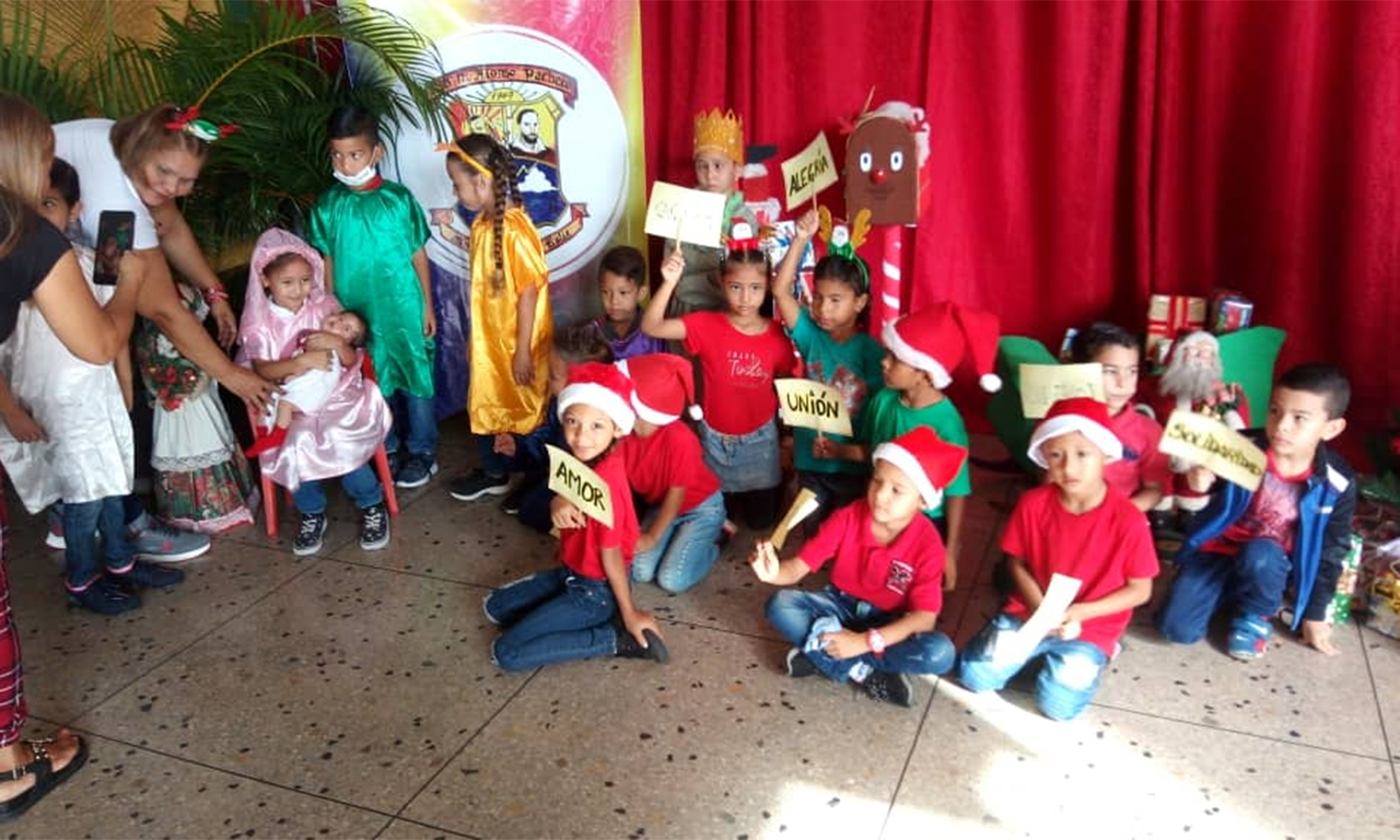 Iniciaron con la realización de un pesebre viviente, con un bebé, hijo de una representante del plantel. Los alumnos de primer grado enviaron un mensaje de amor, esperanza, alegría y unión a las familias venezolanas.