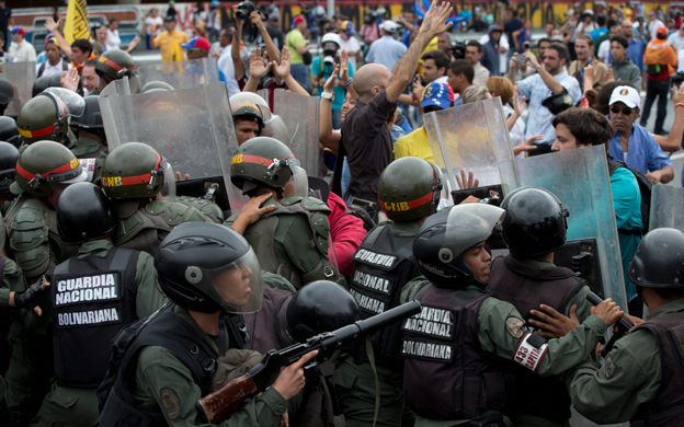 Henrique Capriles Radonski, gobernador de Miranda, quien encabezó la marcha con otros dirigentes intentó avanzar en medio de la autopista Francisco Fajardo, pero fue interceptado con gas pimienta por policías que los golpearon y empujaron con sus escudos