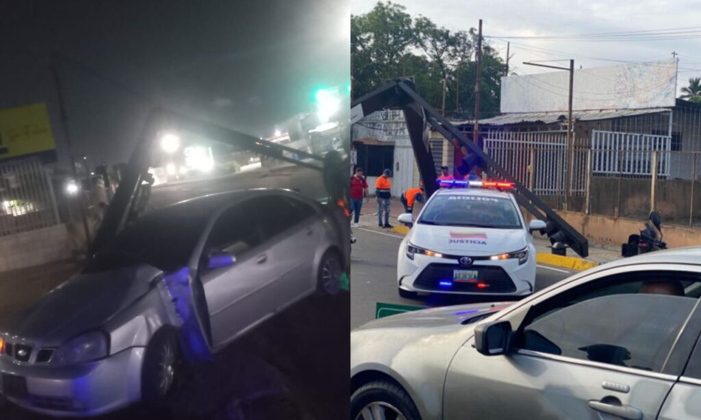 Un conductor de un vehículo Chevrolet Optra color gris colisionó y derribó la madrugada de este lunes 17 de noviembre un semáforo ubicado en la avenida 28 (La Limpia) con calle 70, cerca de la estación de servicio Santa Fe, parroquia Chiquinquirá, Maracaibo, estado Zulia.