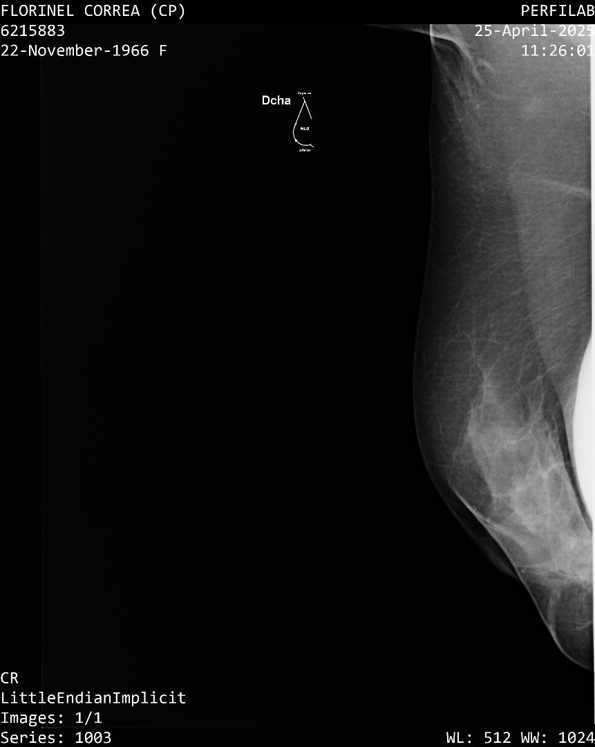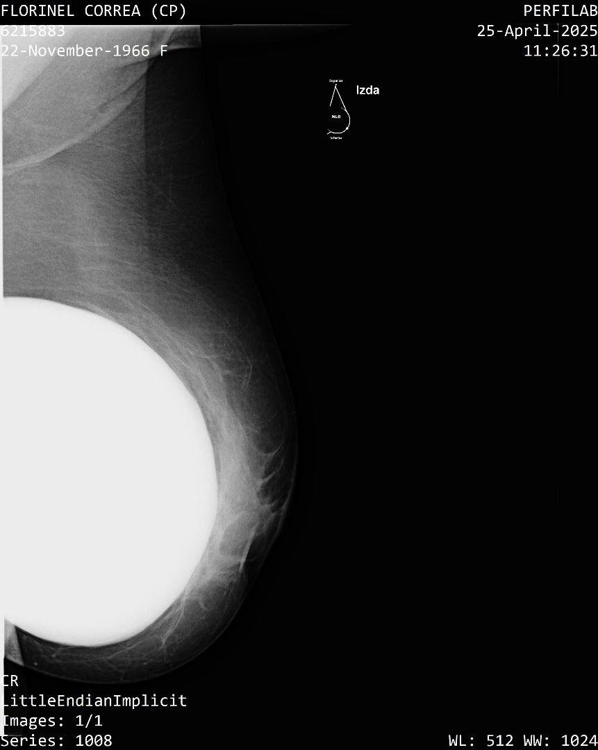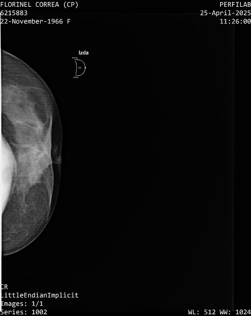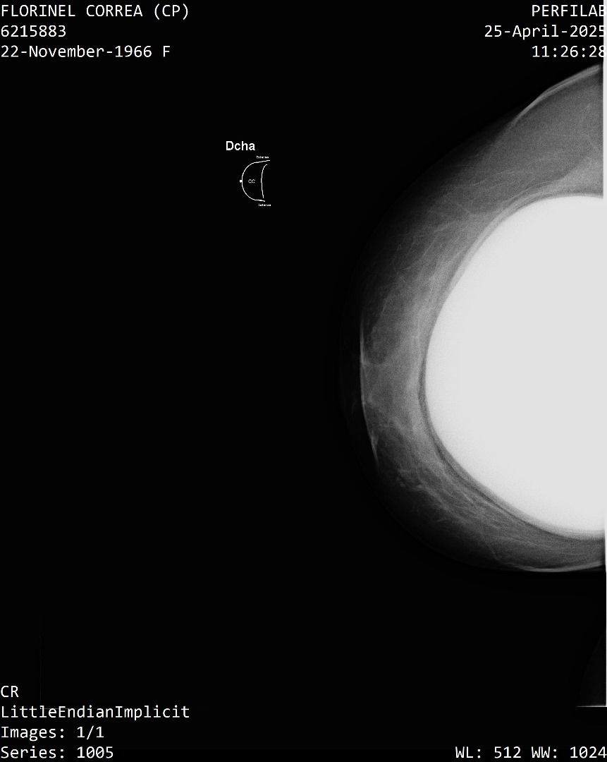 A Correa se le practicó un estudio de mamografía bilateral, la cual reporta una densidad mamaria heterogéneamente densa (ACR C), lo cual puede dificultar la detección de lesiones sospechosas.