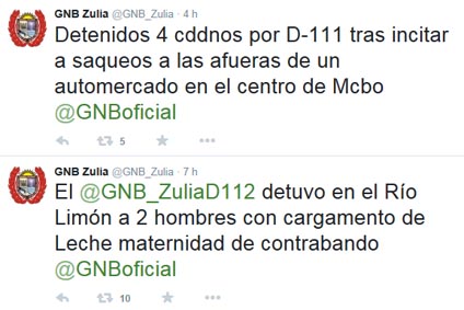 La información fue publicada en la cuenta en Twitter @GNB_Zulia