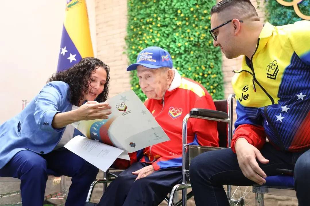 En una silla de ruedas, rodeado por familiares, vestía una chaqueta deportiva con los colores de la bandera de Venezuela. “Estoy tan agradecido”, expresó León con emoción, orgulloso de ser “ejemplo para que otros venezolanos, como yo, llegaran lejos”.