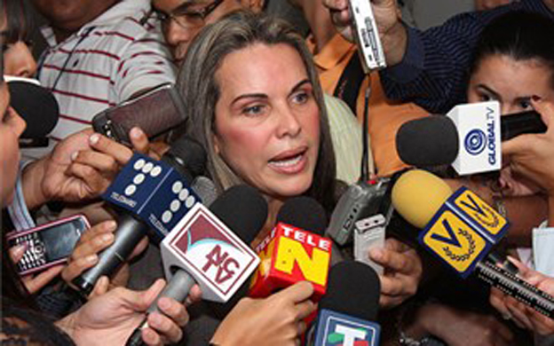 Rodeada de sus compañeros del partido UNT, con los ojos húmedos, la esposa del líder opositor Manuel Rosales, se mantuvo firme y recalcó que “no hay poder humano que le quite la esperanza y la fe a una esposa, a una madre, a una hermana, a quien tenga a un preso político injustamente"