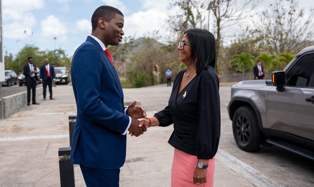 Delcy Rodríguez llegó este jueves 9 de abril a la isla caribeña de Granada en su primer viaje al extranjero desde que asumió el cargo, tras la captura de Nicolás Maduro por parte de Estados Unidos.