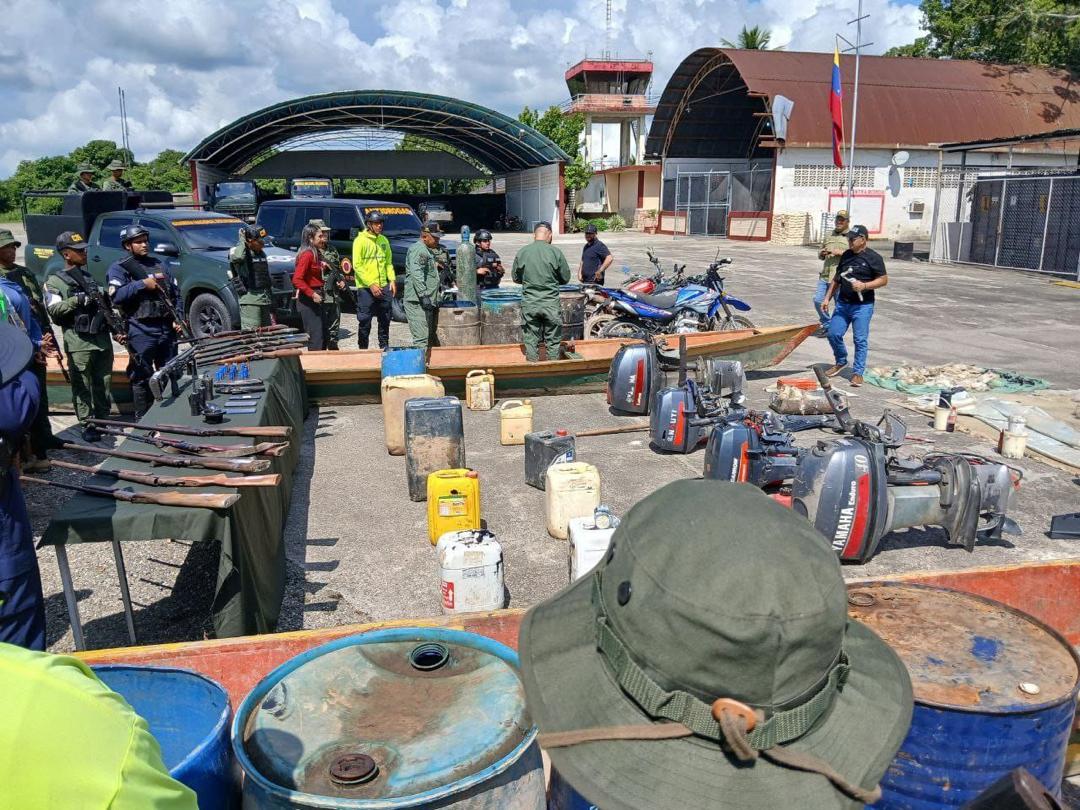También se incautaron 12 escopetas de diferentes calibres, una escopeta automática calibre 12 y 31 cartuchos (cal. 12 y 7,62x59mm), tres teléfonos, un GPS, cuatro radios transmisores, una brújula, cinco motocicletas, tres embarcaciones con cuatro motores fuera de borda, materiales para fabricación de embarcaciones y 2 mil litros de combustible.