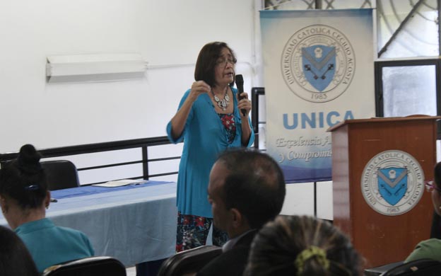 Hernández es defensora de los de la educación en el país desde el auditorio de la Unica ofreció un foro detallando el impacto de la transformación, violación de los derechos humanos en materia educativa y las propuestas educativas al Gobierno nacional hechas de la Organización de Naciones Unidades (ONU).