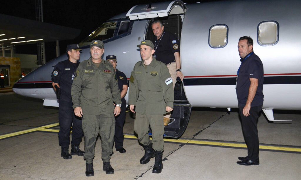 El gendarme llegó a Buenos Aires en un avión privado fletado por la AFA tras muchas horas de viaje, ya que realizó paradas en Guayaquil (Ecuador) y Arica (Chile).