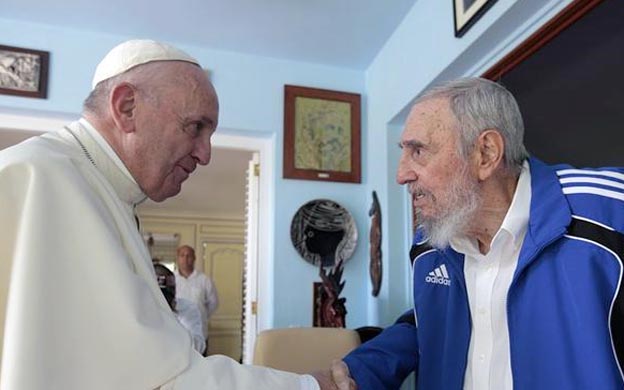 El vocero del Vaticano, el padre Federico Lombardi, dijo que el expresidente cubano escribió una dedicatoria al papa: “para el papa Francisco, en ocasión de su fraternal visita a Cuba. Con admiración y respeto del pueblo cubano. Fidel”.