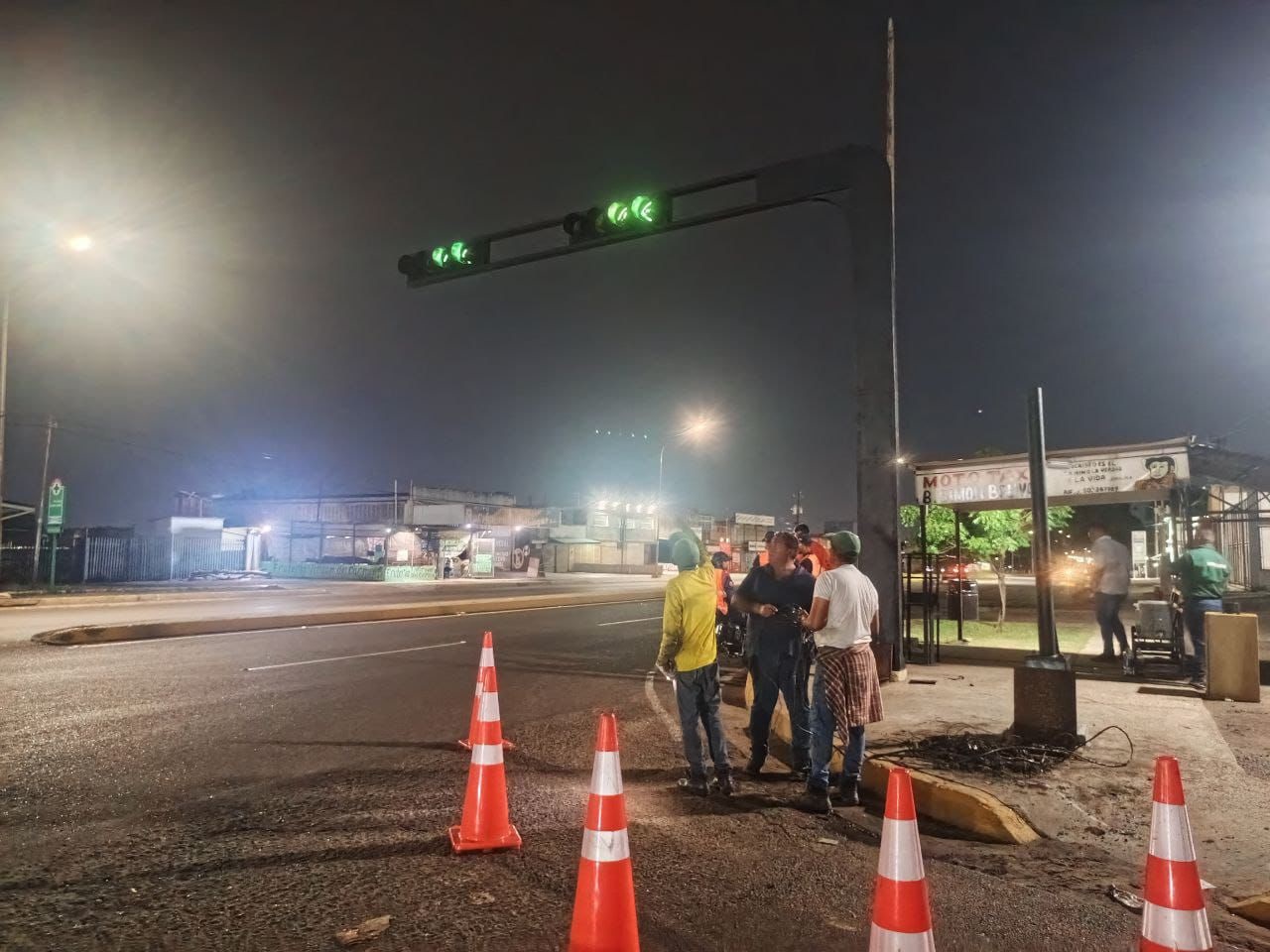 Tras una intensa labor que inició el viernes 7 de junio y permitió que a la 1:00 de la madrugada del domingo, el Imtcuma encendiera los seis semáforos de la calle 97 con avenida Delicias, específicamente en la esquina del Palacio de Justicia, parroquia Chiquinquirá, en el casco central.