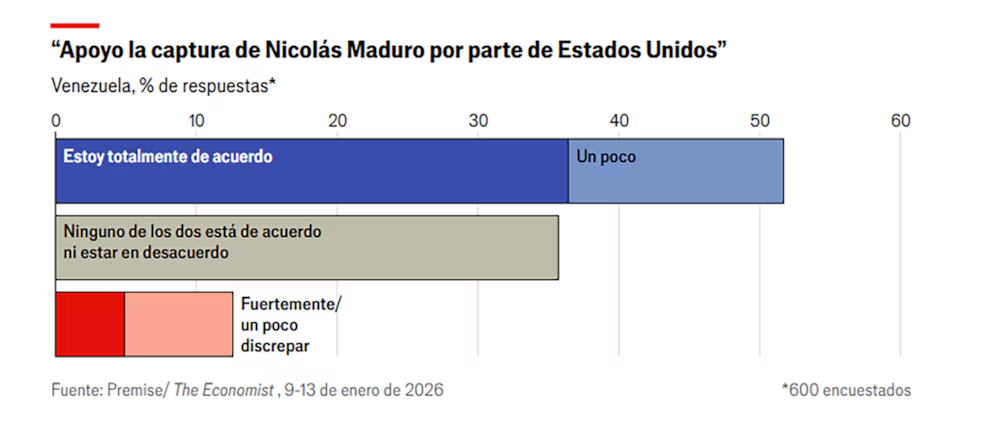 Sobre la intervención militar en Venezuela, el 51 % apoyó “explícitamente” la captura de Nicolás Maduro y Cilia Flores por parte de la Casa Blanca.