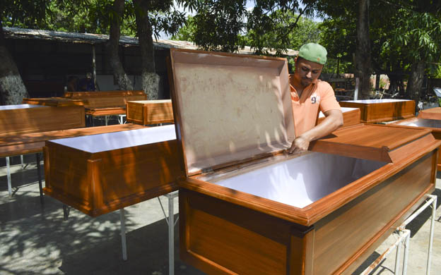 Aguantan de tres a 20 horas de velatorio según el tipo de urna. Las actuales son construidas con MDF y aserrín. Un servicio funerario puede costar hasta 600 mil bolívares en Maracaibo. La producción de ataúdes es de 100 semanal por carpintería