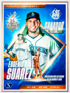 Suárez marcó un hito en la historia del galardón al convertirse en el primer ganador que jugó para dos equipos en la misma temporada, tras iniciar la campaña con los Cascabeles de Arizona, donde se convirtió en el primer venezolano en conectar cuatro cuadrangulares en un mismo partido, antes de unirse a los Marineros de Seattle.