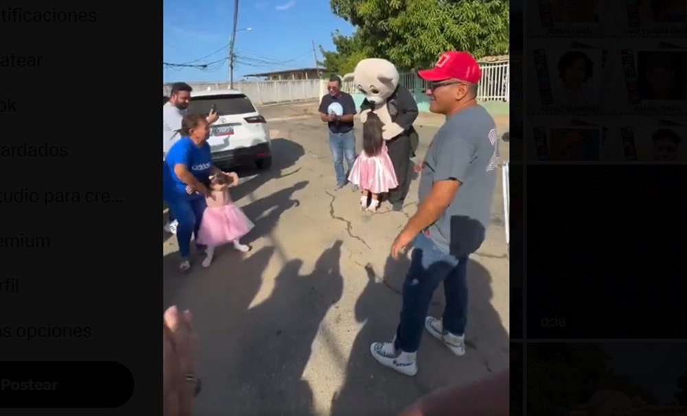 Al ser abrazado por las pequeñas, el dirigente político se quitó la parte superior del disfraz y dejó al descubierto su rostro, lo que desató la emoción de las niñas. Finalmente, se fundieron en un abrazo.