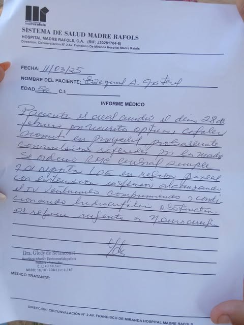 Para cualquier apoyo extra que se desee realizar por la salud de Ezequiel hay que contactar a Norkis Finol, tía del pequeño guerrero, por el número: 0412-703-5953.