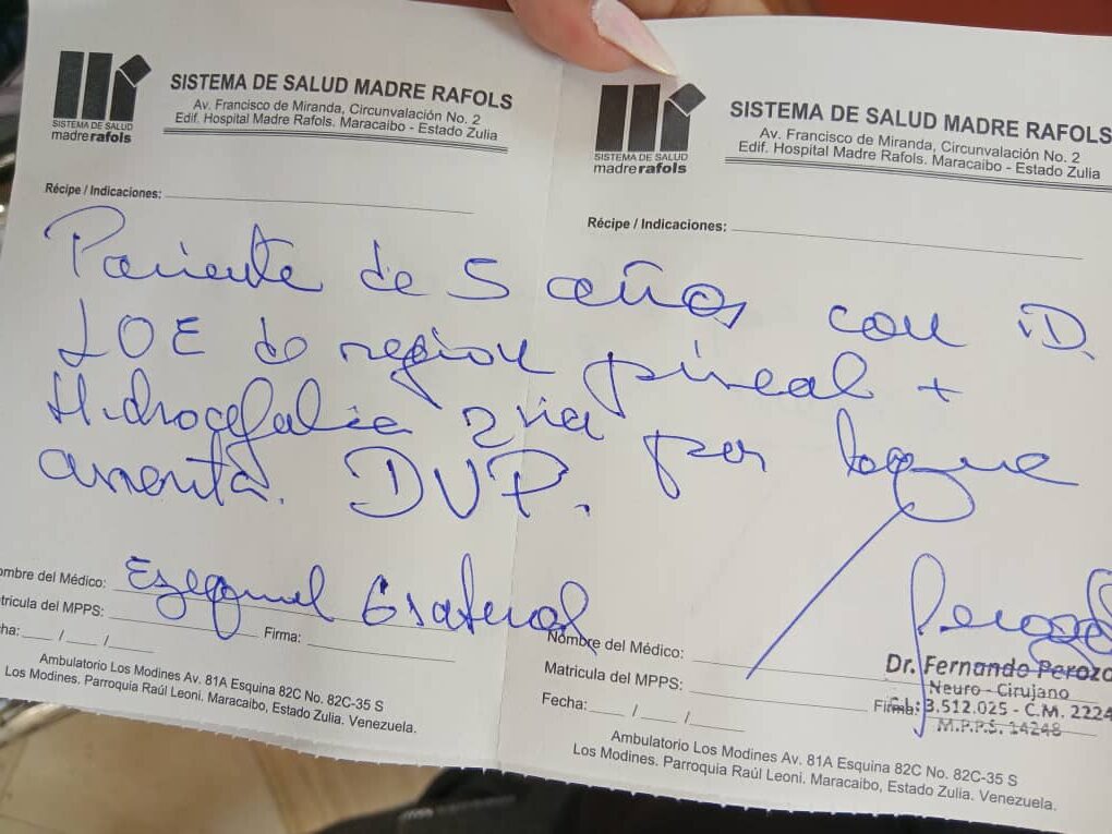 Norkis Finol, tía del pequeño, contó este jueves 13 de marzo al Diario La Verdad que requiere una válvula ventrículo-peritoneal (DVP) para que pueda ser tratado lo más rápido posible.