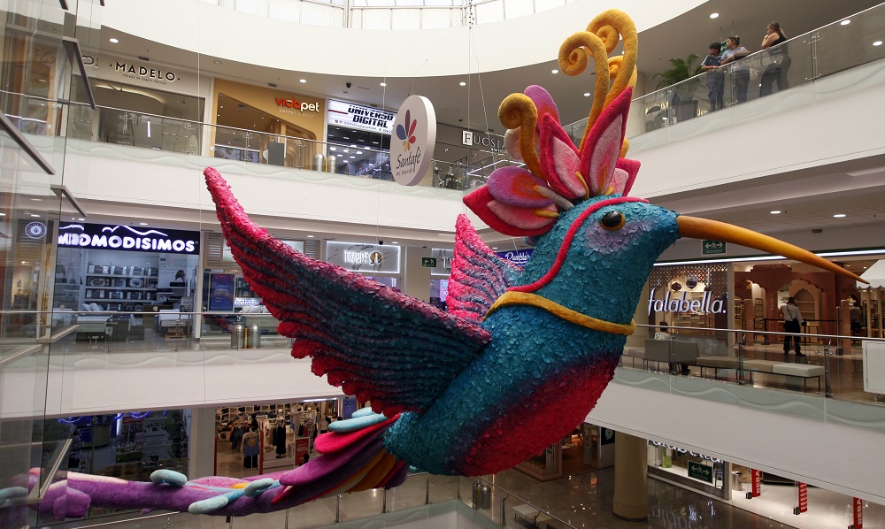 La propuesta artística de este año se llama “El viaje de las flores”, que lleva a los visitantes del Santafé a “ser aventureros” y recorrer las figuras que adornaron los tapetes de años pasados, tales como un caballito de mar, loros, colibríes, mariposas, entre otras, y que en esta ocasión están dispuestas alrededor de todo el centro comercial, señaló.