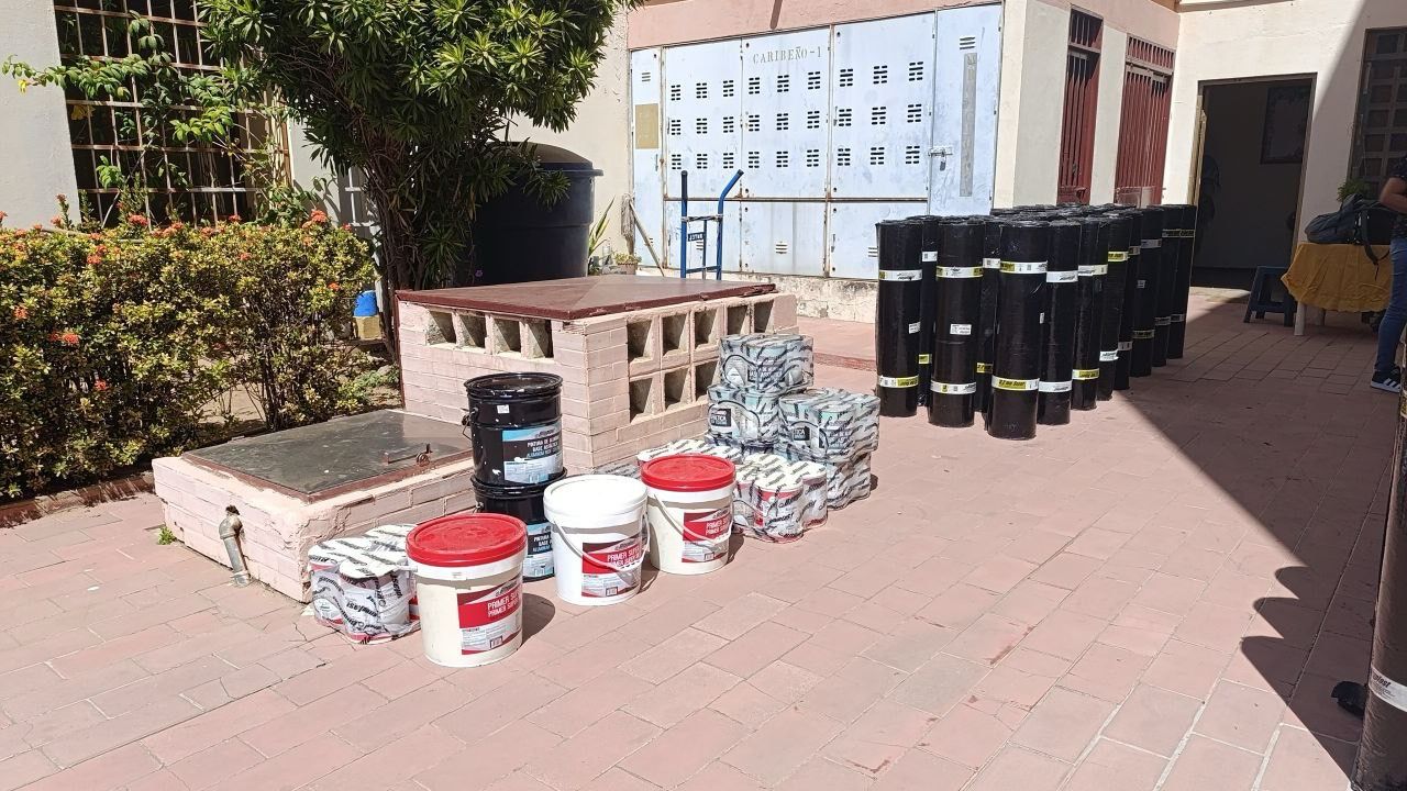 Más de 400 familias del conjunto residencial ubicado en la parroquia Manuel Dagnino recibieron más de 700 rollos de manto asfáltico, más de 200 cuñetes de primer, más de 270 cuñetes de pintura aluminizada y más de 250 cuñetes de cemento plástico
