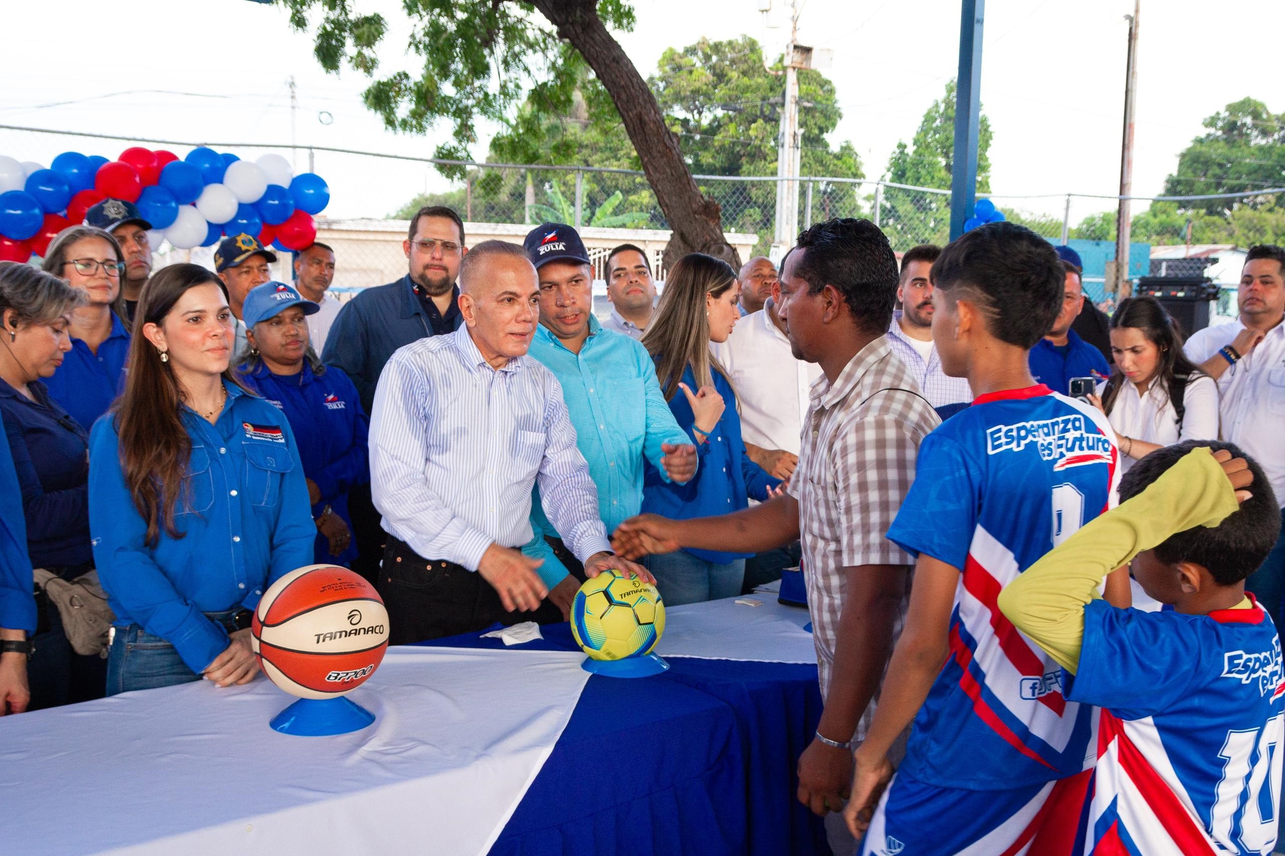 El gobernador del Zulia, Manuel Rosales Guerrero, junto con los miembros de su gabinete de gobierno, inauguró, la tarde noche de este jueves 4 de julio, de forma simultánea, cuatro canchas de usos múltiples en el estado Zulia.