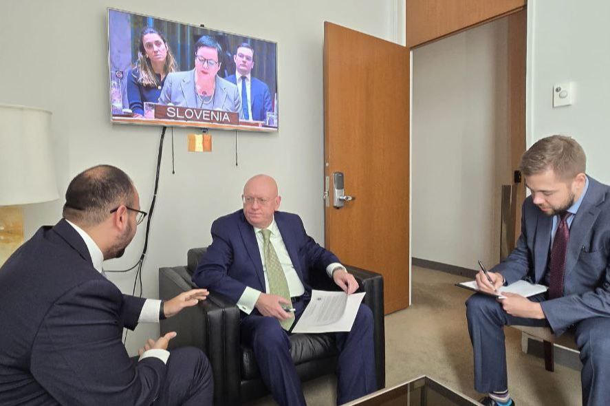 Pérez enseñó la comunicación a Vasily Alekseyevich Nebenzya, embajador ruso ante la ONU y actual presidente del Consejo de Seguridad.