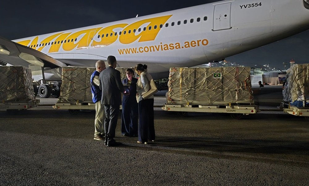 La llegada de este cargamento permite indicar que son ya 93 de las 300 toneladas prometidas por Brasil, que van a llegar durante los primeros meses.