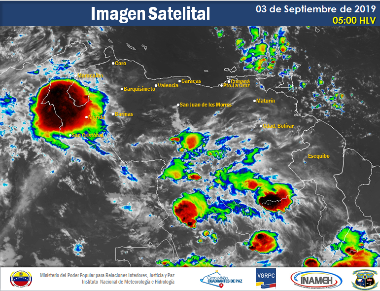 El Instituto Nacional de Meteorología e Hidrología (Inameh) reportó que para este martes se registrarán fuertes precipitaciones en la región occidental y sur del país