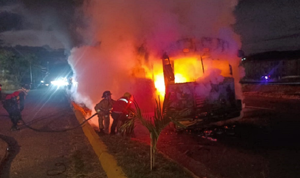 Dos personas resultaron heridas en el incendio de un autobús de transporte público en la autopista Charallave-Caracas a la altura de Makro-Red Vital, estado Miranda, que se registró la madrugada de este miércoles 24 de enero.