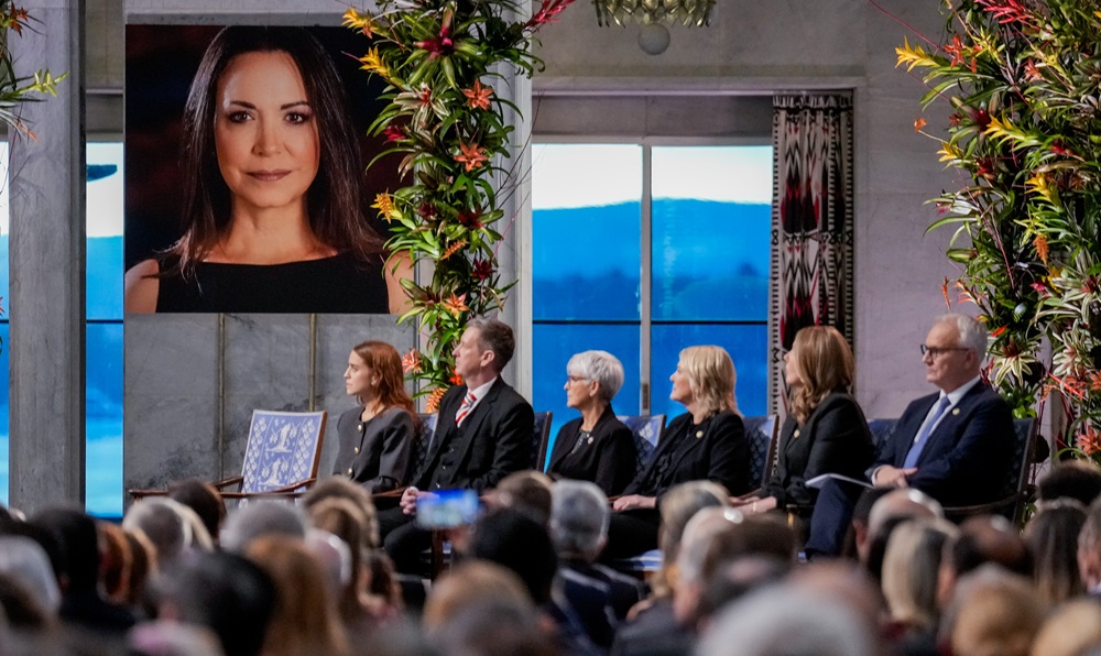 La ceremonia de entrega del Premio Nobel de la Paz inició a la 1.00 de la tarde (8.00 de la mañana, hora de Venezuela) de este miércoles 10 de diciembre sin la presencia de María Corina Machado, quien se encuentra de camino a Oslo, Noruega.
