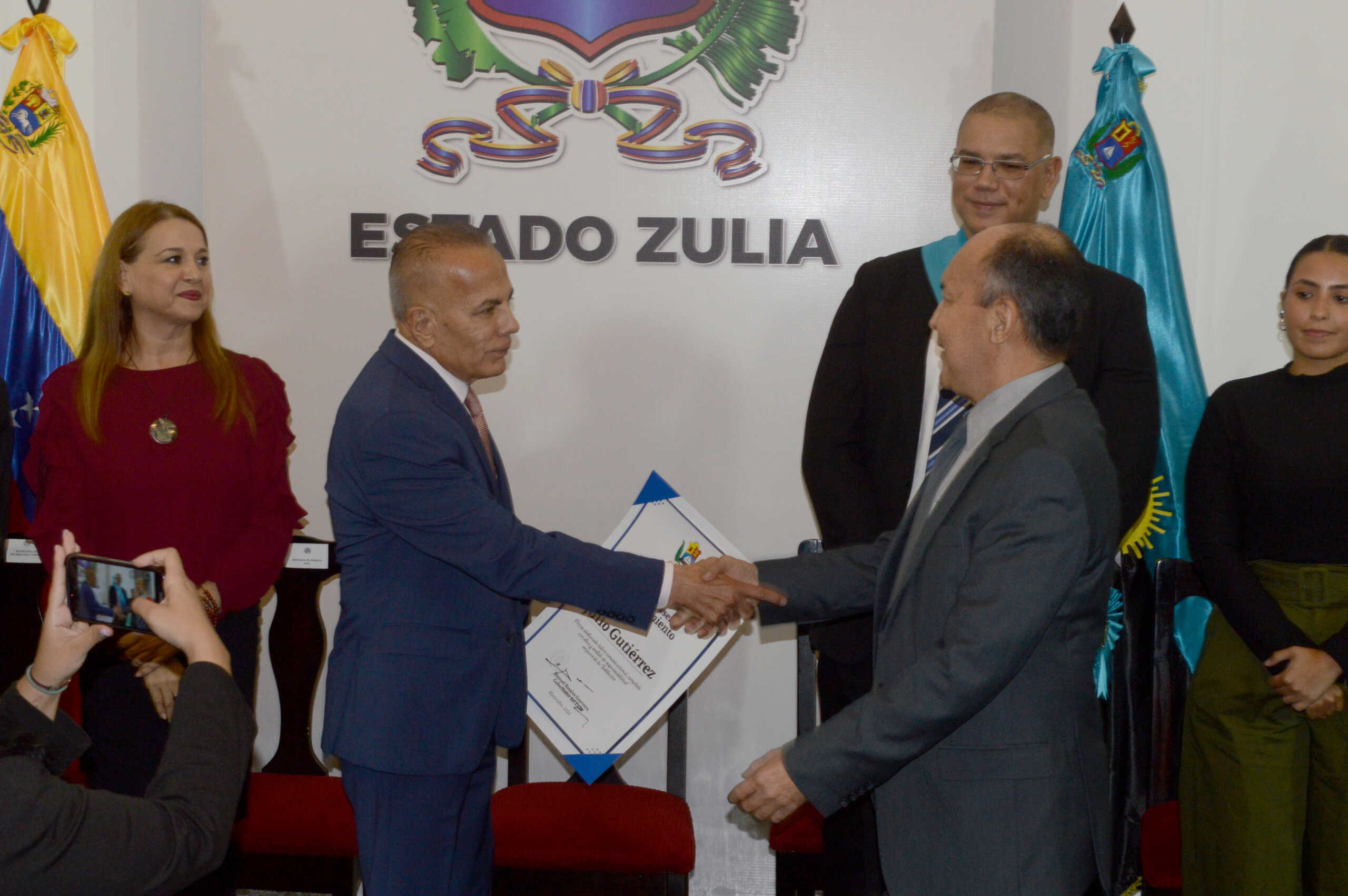 El mandatario regional entregó el diploma a Gutiérrez “por su destacada labor comunicacional, cumplida con ética y sentido de responsabilidad a favor de” la Gobernación del Zulia.