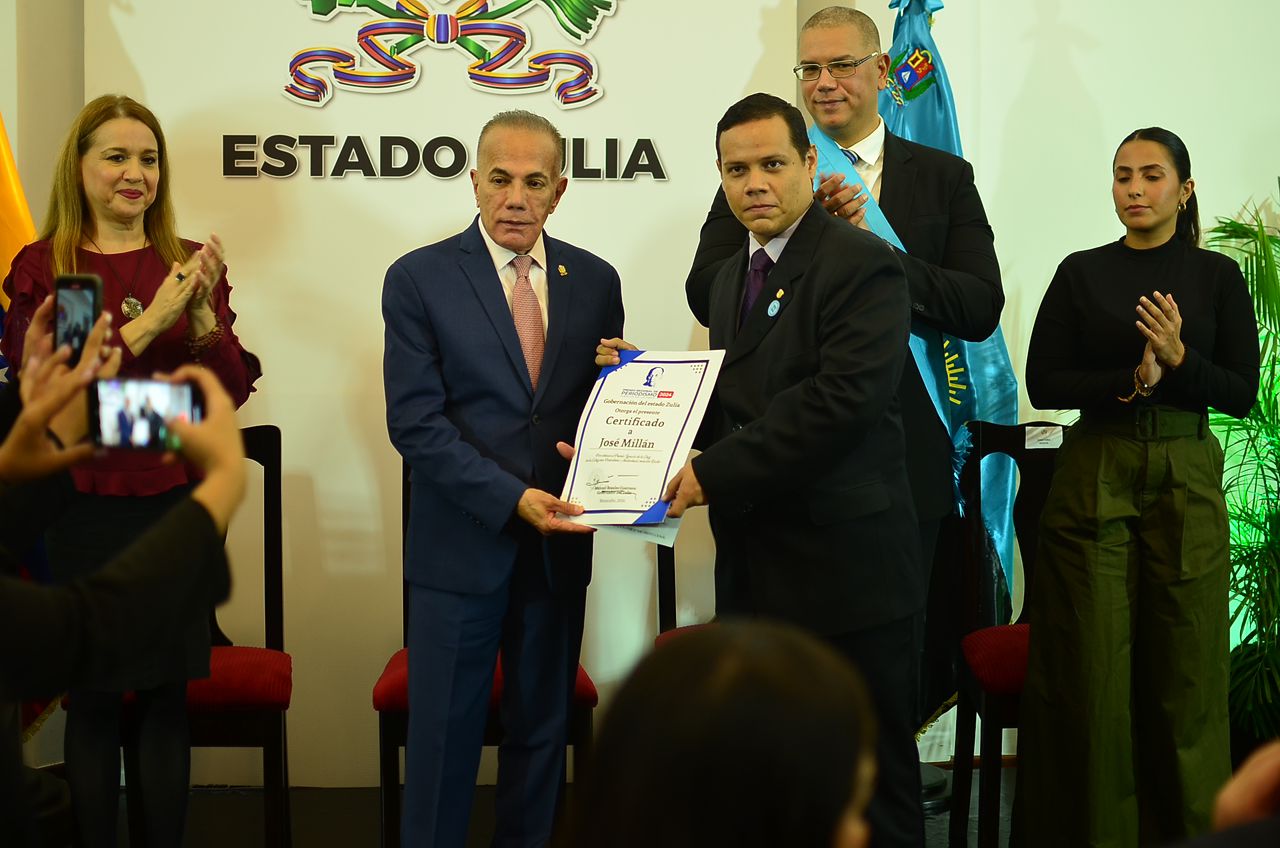 El comunicador social Julio Gutiérrez, jefe de Redacción del Diario La Verdad, recibió un reconocimiento especial de parte de Manuel Rosales Guerrero, gobernador del Zulia, por el Día del Periodista.