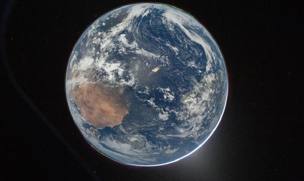 Esta imagen destaca por mostrar el globo terráqueo completo, apreciándose áfrica, Europa y las auroras polares, junto a la luz zodiacal originada por el polvo que refleja la luz solar en el sistema solar.
