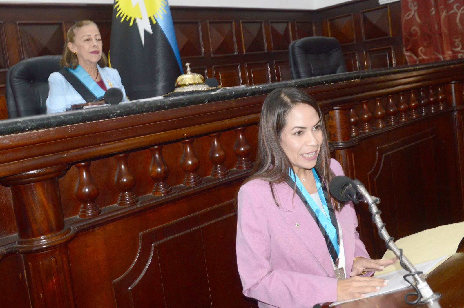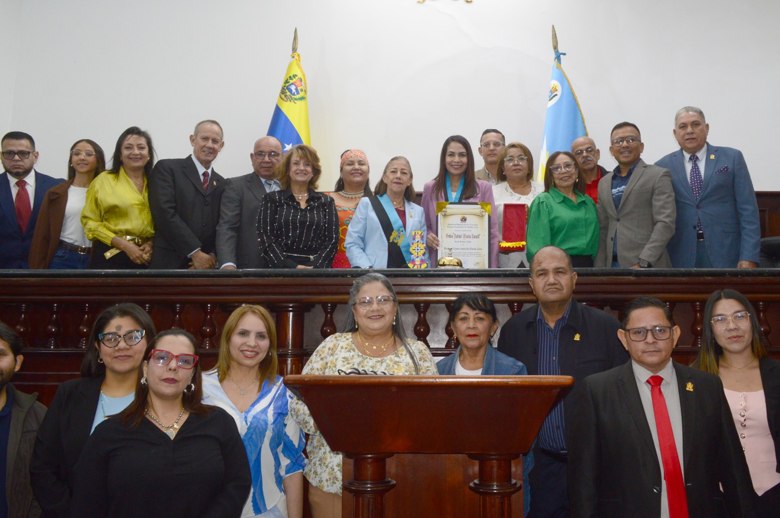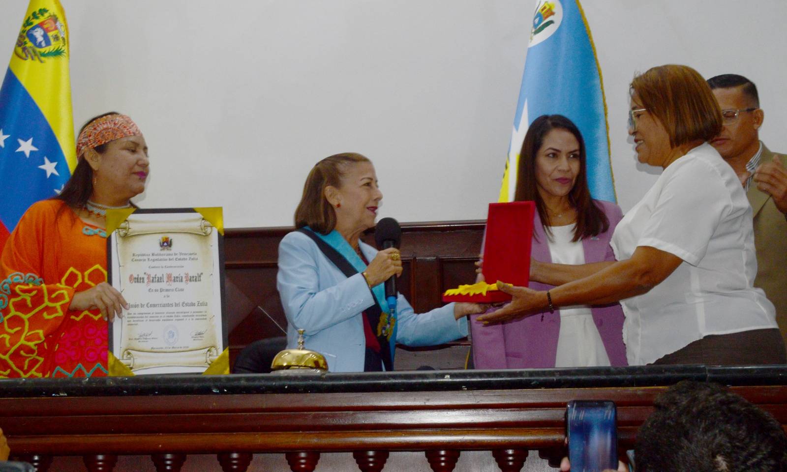 Mediante una sesión solemne, María Alejandra Contreras, presidenta de la Ucez, obtuvo el reconocimiento de manos de la presidenta del Parlamento zuliano, Magdely Valbuena.