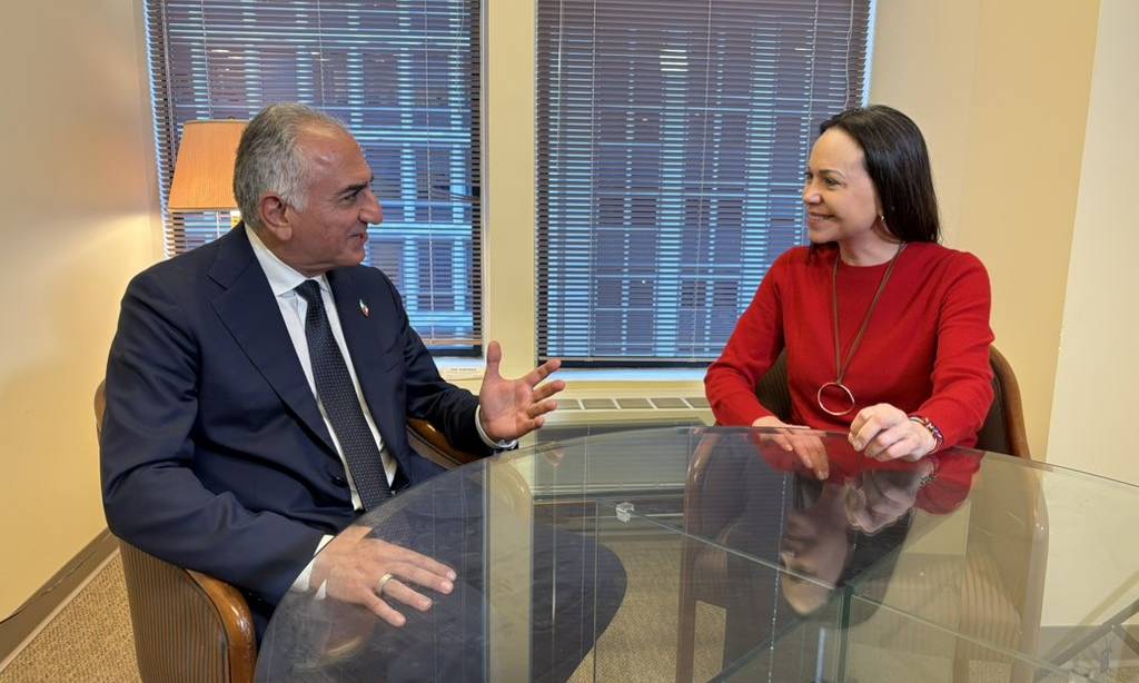 La líder opositora escribió este jueves en X que ella y el hijo del último sah de Persia intercambiaron "perspectivas sobre nuestras respectivas luchas y unimos nuestros esfuerzos hacia un objetivo común: la liberación de Irán y Venezuela de la opresión" en Washington