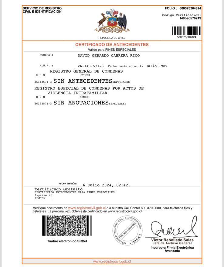 “Se buscaron antecedentes de Venezuela, Chile y de Estados Unidos y salió limpio de todo porque no tenía ningún delito”.