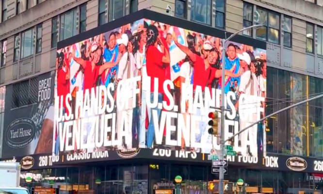 Mensaje de “No a la Guerra en Venezuela” aparece en Times Square