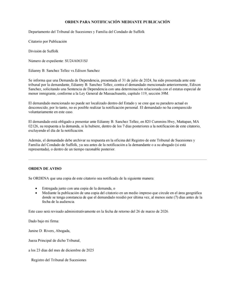 Orden para Publicación Mediante Notificación Expediente Nro SU24A0641SJ