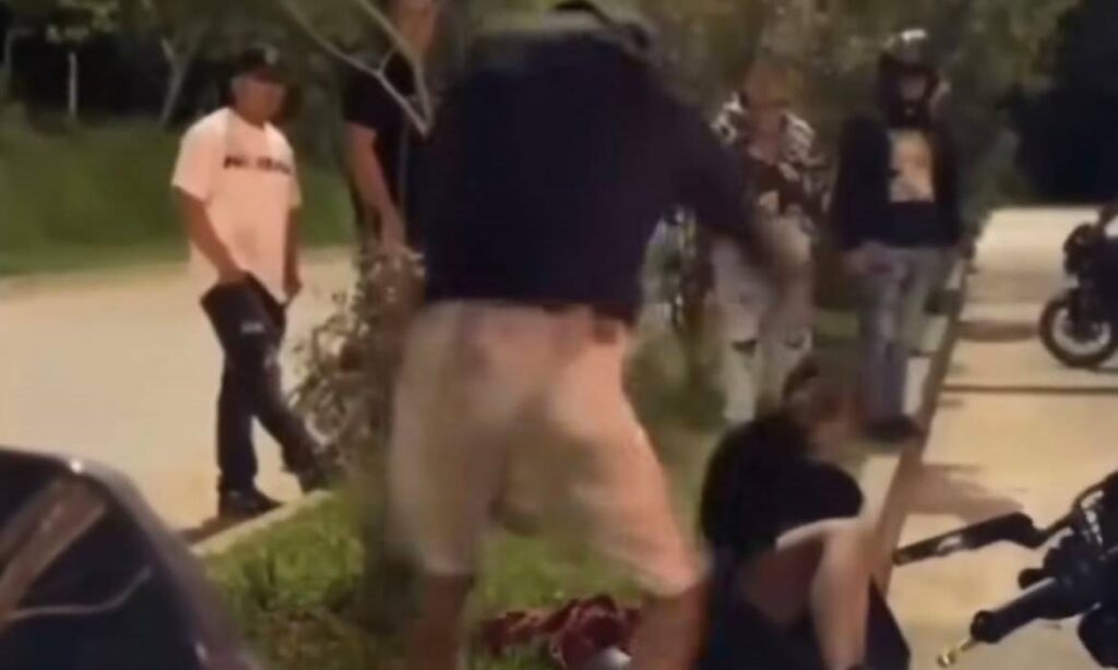 Ante la mirada atónita de otros jóvenes y transeúntes que se encontraban en el sector, el padre decidió expresar su angustia y malestar mediante una reprimenda física inmediata, ignorando las cámaras que registraban la escena.