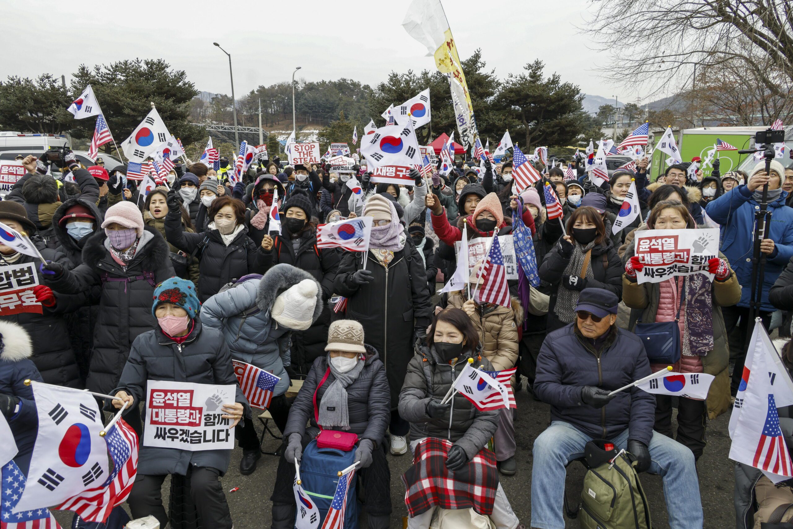 Mientras Yoon evitaba presentarse en la sede de la CIO y permanecía detenido en Uiwang, simpatizantes del presidente se manifestaron en torno a las instalaciones de la oficina anticorrupción.