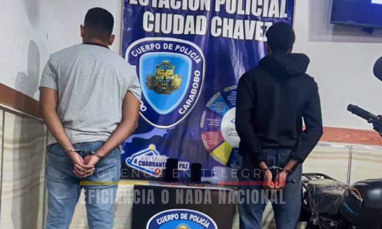 Dos hombres que se desplazaban en una motocicleta fueron detenidos en La Isabelica, parroquia Rafael Urdaneta, municipio Valencia, estado Carabobo, acusados de “incitación al odio, traición a la patria y promoción del ataque militar de Estados Unidos contra Venezuela”.