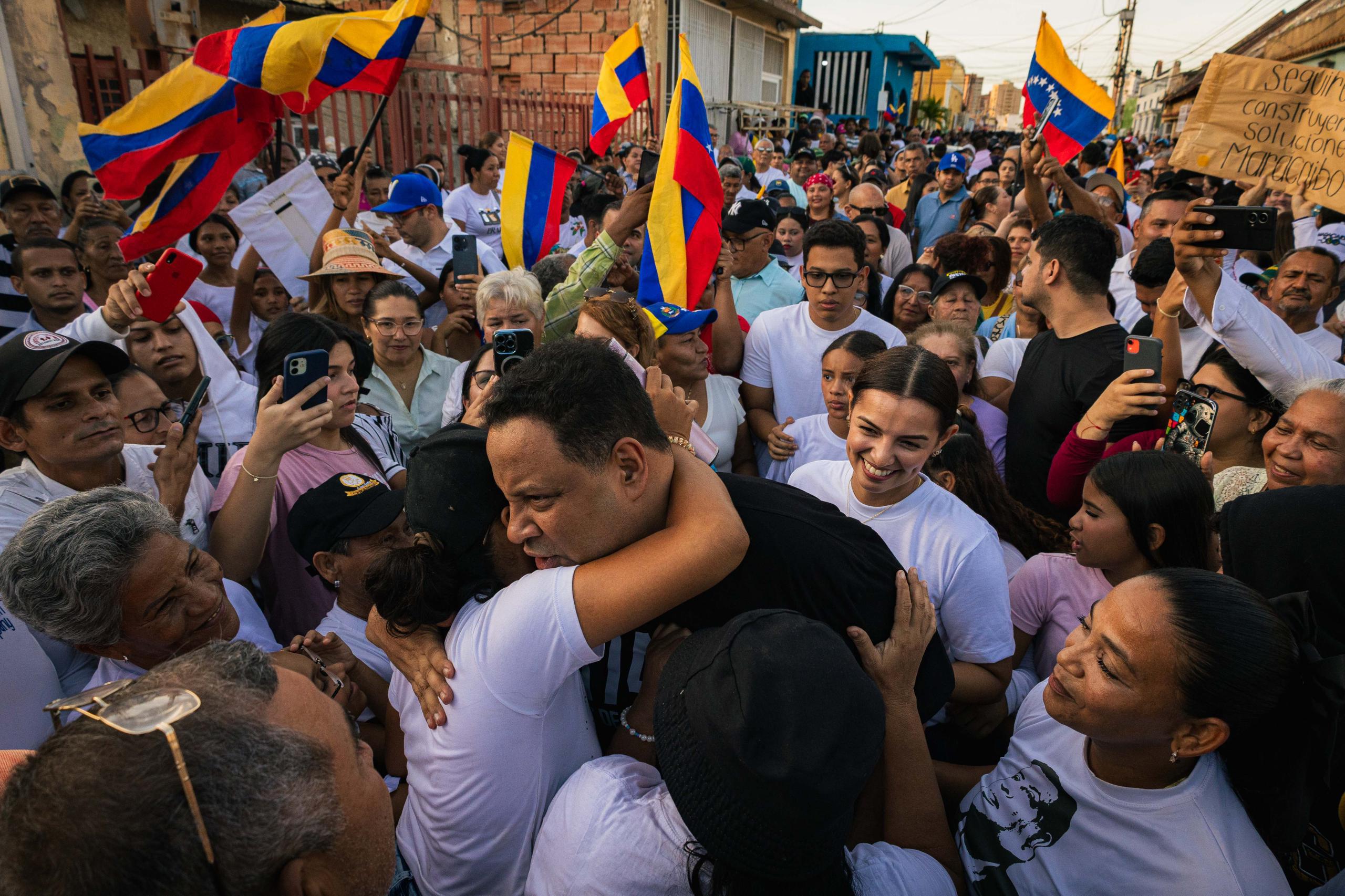 Atravesando una multitud, en el sector Santa Lucía, Rafael Ramírez, exalcalde de Maracaibo y expreso político, protagonizó la tarde de este miércoles 22 de abril su primer reencuentro público con la ciudadanía, a menos de 48 horas de haber sido excarcelado.